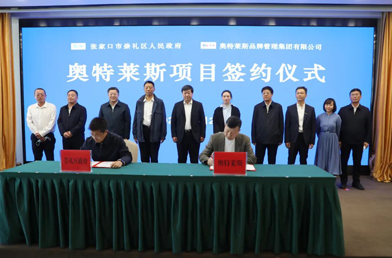 簽約儀式上,奧特萊斯(中國)董事局主席李忠民、張家口區(qū)委副書記、政府區(qū)長趙贊分別代表雙方簽署合作協(xié)議。